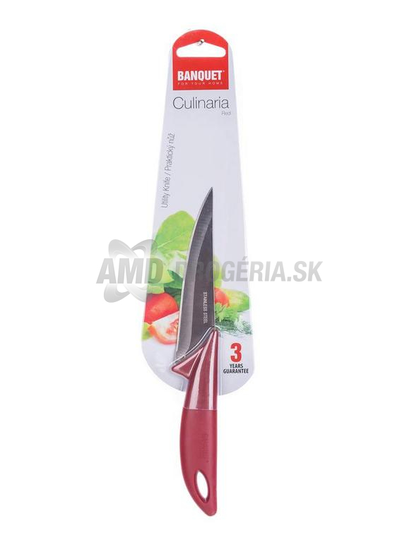 Nôž praktický 14cm Red Culinaria. Parametre produktu: Dĺžka (cm): 22 Dĺžka čepele (cm): 10,8 Šírka ostria (cm): 1,5 Dĺžka rukoväte (cm): 12,5 Materiál: Oceľ / plast Hmotnosť netto (kg): 0,0425 Hmotnosť brutto (kg): 0,063