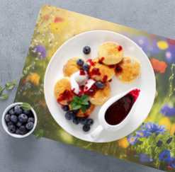 Praktické prestieranie s dekorom kvetov ochráni stôl alebo obrus pred poškriabaním a znečistením. Zároveň rozjasní prestretý stôl a dodá mu veselý a svieži vzhľad.