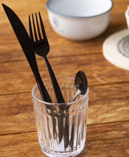 Moderné príbory so štíhlou siluetou a elegantne prehnutým nožom sa stanú dominantou každodenného aj slávnostného stolovania. Sú vyrobené z ušľachtilej ocele a opatrené odolným čiernym PVD povrchom, ktorý zaručuje vysokú trvácnosť a dlhú životnosť.