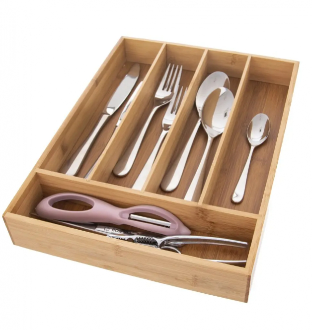Príborník z bambusového dreva s rozmernosťami 26x35x5 cm je praktickým a štýlovým doplnkom, ktorý vám pomôže udržať poriadok a organizovanosť vo vašej kuchyni.