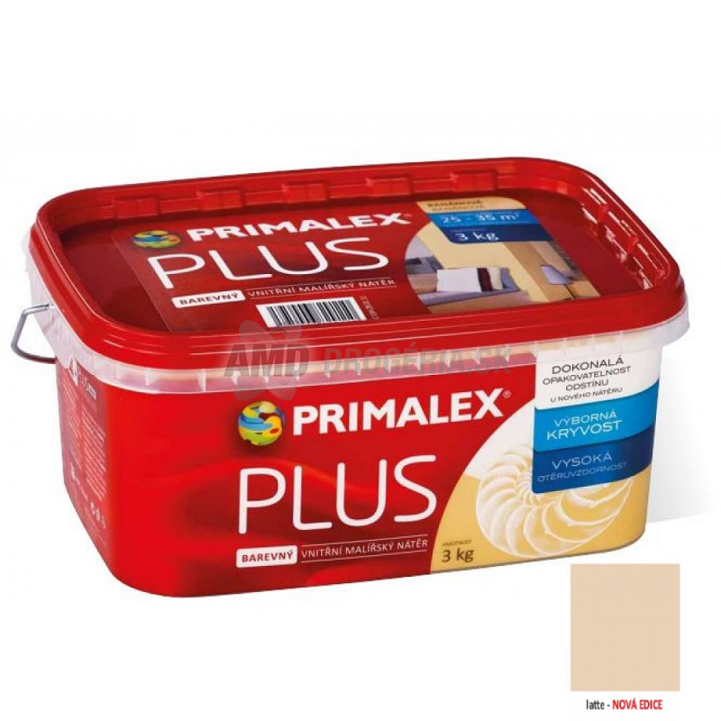 Primalex PLUS latte je vnútorný náter na okamžité použitie - ready mix. Vlastnosti Primalex PLUS farebný:
