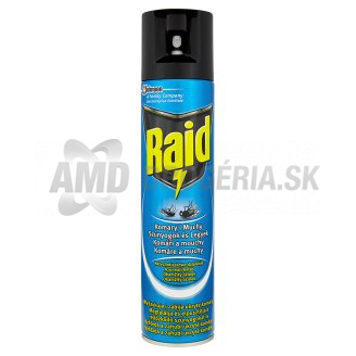 Raid hubič lietajúceho hmyzu insekticídny aerosólový prípravok so zdokonalenou receptúrou, je účinný proti muchám, komárom vrátane tigrích, osám a ďalšiemu lietajúcemu hmyzu, ako sú mole, sršne.Raid hubič lietajúceho hmyzu znamená okamžitý účinok, príjemnou a sviežu vôňu. Je vhodný pre použitie v celom dome, vrátane kuchýň, spální, kúpeľní a pivníc.