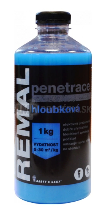 Remal hĺbková penetrácia 1L. Je prefarbený hĺbkový penetračný náter na nasiakavé podklady. Dôsledkom veľmi malej veľkosti častíc preniká hlboko do penetrovaného povrchu. Zafarbenie penetrácie pomáha ľahkým modrým zafarbením kontrolovať rozsah náteru, aby nezostal miestami nenapenetrovaný podklad.