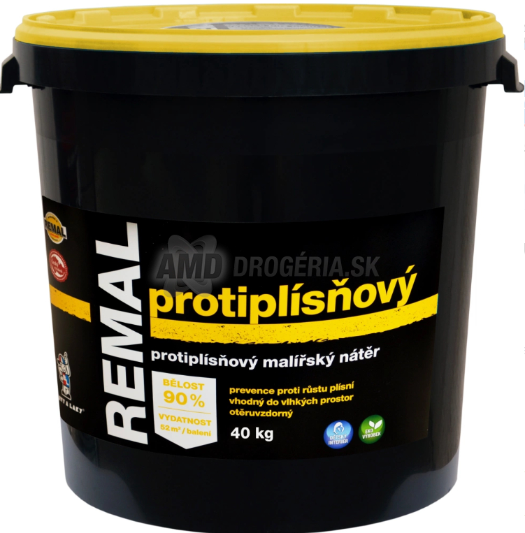 REMAL Protiplesňová farba proti plesni (40 kg) je špecializovaná vodou riediteľná maliarska farba navrhnutá na efektívne riešenie a prevenciu plesní na stenách. Vďaka svojim protiplesňovým vlastnostiam poskytuje dlhodobú ochranu proti rastu plesní, húb, kvasiniek, rias a baktérií, čím zabezpečuje zdravé a esteticky príjemné vnútorné prostredie.