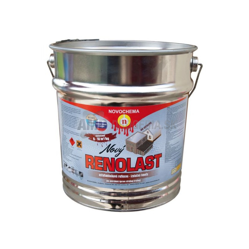 Asfaltohliníková reflexoizolační náterová hmota RENOLAST JE určená na povrchovú úpravu striech (plech, IPA, térový papier ostatné strešné izolačné lepenky), dreva, niektorých plastických hmôt, BETÓNU POD.,Kde sa okrem izolačného konzervačného účinku požaduje, ABY náter účinne odrážal Svetelné tepelné lúče.