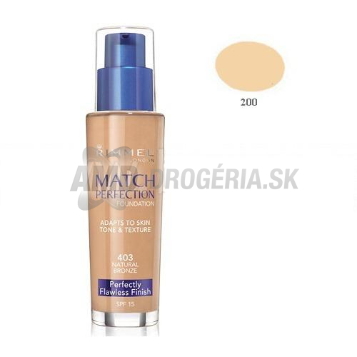 Rimmel London Rimmel London Match Perfection Foundation SPF15 Ľahký makeup s ochranným faktorom SPF15.Unikátny inovatívny receptúra ??so Smart-Tone technológií, ktoré napodobňuje Vašej pleť a texturuPro bezchybný prirodzený vzhľad pleti.Vhodné pre všetky typy pleti.Poznámka: Vyobrazený odtieň môže byť skôr orientačné, záleží na nastavení farieb Vášho monitoru.