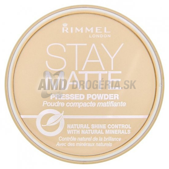 Rimmel London Rimmel London Stay Matte Long Lasting Pressed Powder Dlhotrvajúci kompaktný púder. Zamtňuje pleť a kontroluje nadmerný lesk.Pomáhá minimalizovať vzhľad pórov.Poznámka: Vyobrazený odtieň môže byť skôr orientačné, záleží na nastavení farieb Vášho monitoru.