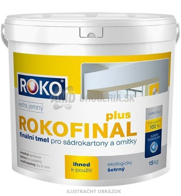 Rokofinal Plus je pastovitá stierková hmota určená na okamžité použitie, špeciálne vyvinutá pre tenkovrstvovú konečnú povrchovú úpravu stavebných konštrukcií. Má veľmi jemnú myšlienku a obsahuje kvalitné spájacie zložky, ktoré umožňujú roztieranie až do nulovej hrúbky. Tmel vyniká výbornou prídržnosťou na rôznych podkladoch – či už nasiakavých alebo nesiakavých, vysokou belosťou a skvelými brúsiacimi prácami.