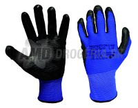 Bezšvové jemné pletené rukavice v modrej farbe potiahnuté nitrilom