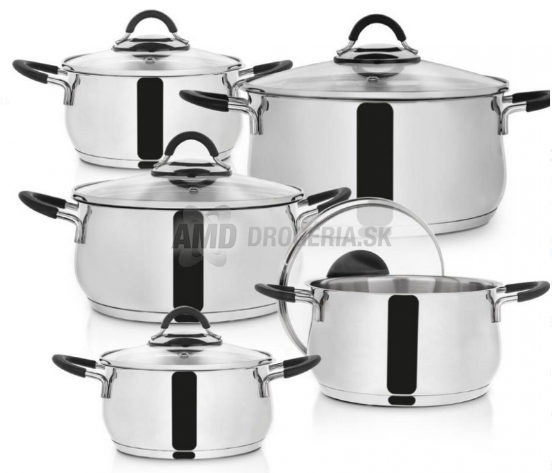 10-dielna sada riadu je ideálnou kombináciou moderného dizajnu, vysokej odolnosti a praktického využitia pre každodenné aj sviatočné varenie. Je vyrobená z prvotriednej nerezovej ocele 304, ktorá je hygienická, odolná voči korózii a poškriabaniu a zabezpečuje dlhú životnosť riadu.
