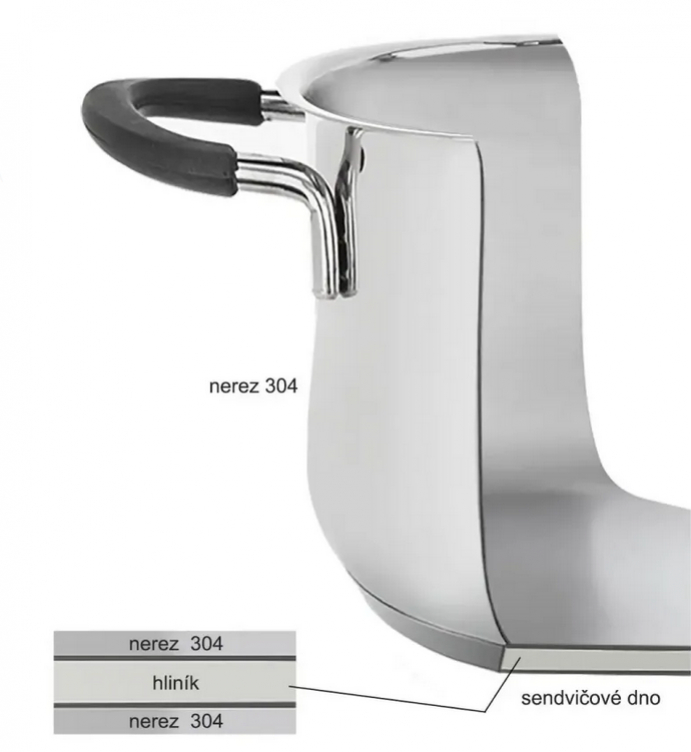 Použitie: indukcia, plyn, elektrina, sklokeramika