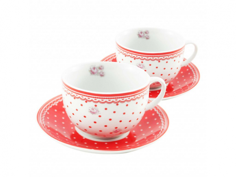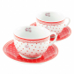 Elegantná čajová porcelánová súprava sa skladá z dvoch čajových šálok (250 ml) s podšálkami. Šálky sú v dekóre červených bodiek na bielom podklade, podšálky v dekóre bielych bodiek na červenom podklade. Ozdobte svoj stôl nádhernými hrnčekmi a vychutnajte si svoj čaj vo dvojici. Dodávame v krásnom darčekovom balení.