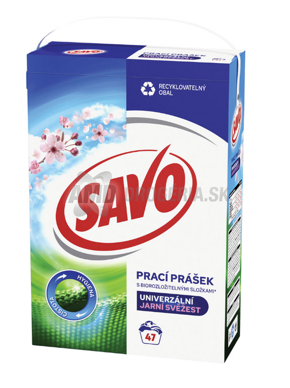 Určený pre farebné aj biele oblečenie - Odstráni aj odolné škvrny - Pomáha odstraňovať baktérie - Stará sa o farebné aj biele oblečenie - Zanechá oblečenie hygienicky čisté SAVO, ktoré už takmer 50 rokov pomáha udržať českej domácnosti hygienicky čisté, teraz prichádza s novými pracími prostriedkami. Odstránia aj odolné škvrny, pomáhajú odstraňovať baktérie a bielizeň zanechajú príjemne voňavé. Vďaka modernému zloženiu bez chlóru sa nemusíte obávať, že by sa vaše oblečenie zničilo alebo by pri nosení dráždilo pokožku. Pracie prostriedky SAVO Bez Chlóru ocenia predovšetkým rodiny s deťmi, majitelia domácich miláčikov a všetci, ktorí aktívne športujú.