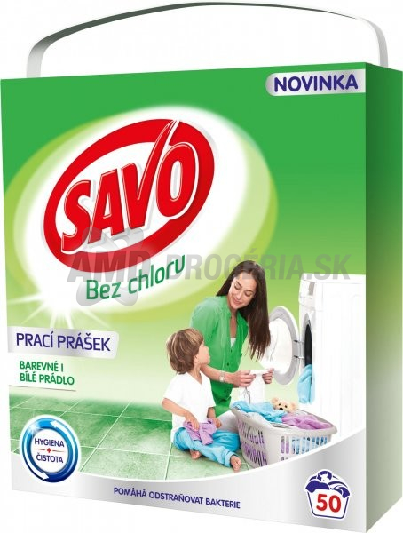 Zbavte sa odolných škvŕn a nechajte svoje prádlo zažiariť čistotou.S univerzálnym pracím práškom Savo na biele i farebné prádlo oživíte všetko svoje oblečenie a vtlačíte mu späť punc novoty. Prací prášok neobsahuje chlór, takže nedráždi pokožku ani dýchacie cesty a nemá negatívny vplyv na textilné vlákna vašej bielizne. Baktérie nemajú proti Savu žiadnu šancu. Zbavte sa nepozvaných návštevníkov pri každom praní a užívajte si pocit dokonalej čistoty.Prací prášok môžete bez obáv použiť na všetky tkaniny s výnimkou vlny a hodvábu. Odstraňuje odolné škvrny savo ničí baktérie. Oživí farby vašej bielizne. Prací prášok Savo neobsahuje chlór.