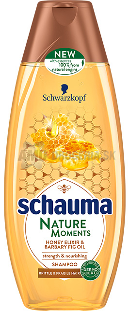 Zloženie: Aqua, Sodium laureth sulfate, Sodium chloride, Cocamidopropyl betaine, Hydrolyzed keratín, Glycine, Panthenol, Prunus armeniaca kernel oil, Mel extract, Opuntia ficus-indica seed oil, Disodium cocoamphodiacetate, Cytric acid, Sodium benzoate, Cocamide MEA, Parfum, PEG-7 glyceryl cocoate, polyquaternium-10, Propylene glycol, PEG-40 hydrogenated castor oil