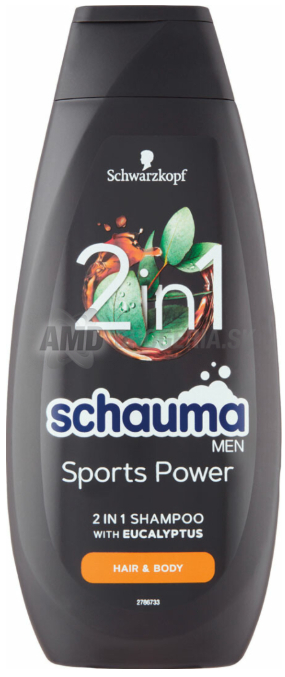 Schauma šampón Sport Power 2v1 s extraktom z eukalyptu pre vlasy a telo. Pre dlhotrvajúci pocit sviežich vlasov. Osviežuje a posilňuje vlasy.
