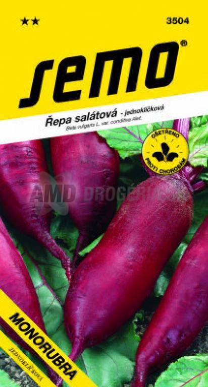MONORUBRA – úrodná odroda s valcovitým tvarom buľvy, vhodná na všetky spôsoby využitia aj na zimné skladovanie. Výsev priamo na stanovisko 3 - 4 cm hlboko. Spon 30x7 cm. V suchom letnom období je potrebné zavlažovať.