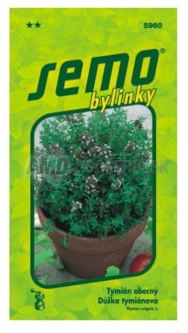 TYMIÁN VŠEOBECNÝ (kód 5960) – nízky rozvetvený poloker s protistojnými čiarkovitými listami. Zberáme vňať na začiatku kvitnutia a sušíme pri teplote do 35 °C. Ako korenie sa pridáva do polievok, omáčok a na prípravu údenín a rýb. Podporuje a upravuje trávenie