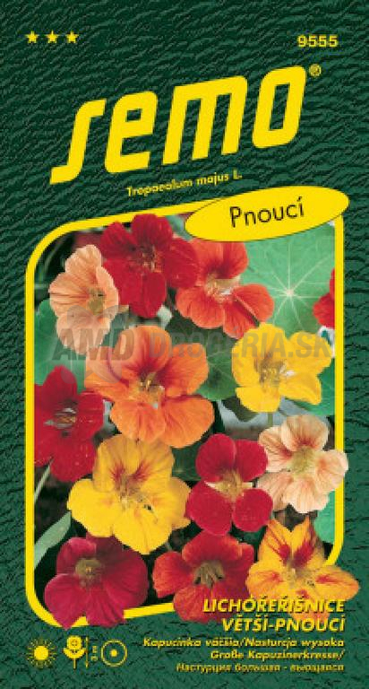 Rýchlo rastúca letnička s okrúhlymi, štítovitými listy. Kvitne ostruhatými, krátko trúbkovitými kvety žlto-oranžových až jasne červených farieb.