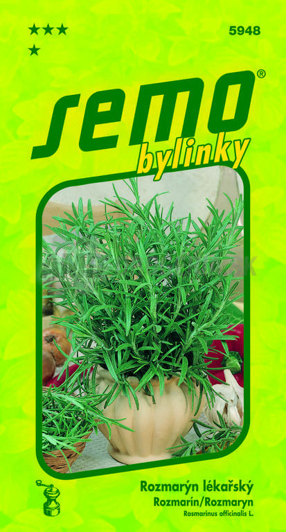 ROZMARÍN – vždyzelený poloker s tuhými čiarkovitými listami a výraznou typickou arómou. V našich podmienkach neprezimuje ich citlivý na mráz, pestujeme ho v nádobách, v lete ho môžeme letniť, na zimu ho schováme do miestnosti. Listy s najmladšími časťami výhonov sa používajú ako korenie do šalátov a na prípravu mäsa. Čaj má upokojujúce účinky.