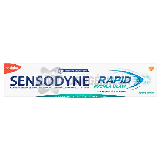 Zubná pasta Sensodyne Rapid Extra Fresh uľaví od bolesti citlivých zubov už v priebehu 60 sekúnd. Jej jedinečné zloženie vytvorí ochrannú bariéru na citlivých miestach zubov. Poskytuje rýchlu úľavu a prináša dlhotrvajúcu ochranu pri čistení zubov dvakrát denne. Pre svieži dych a zdravé zuby.