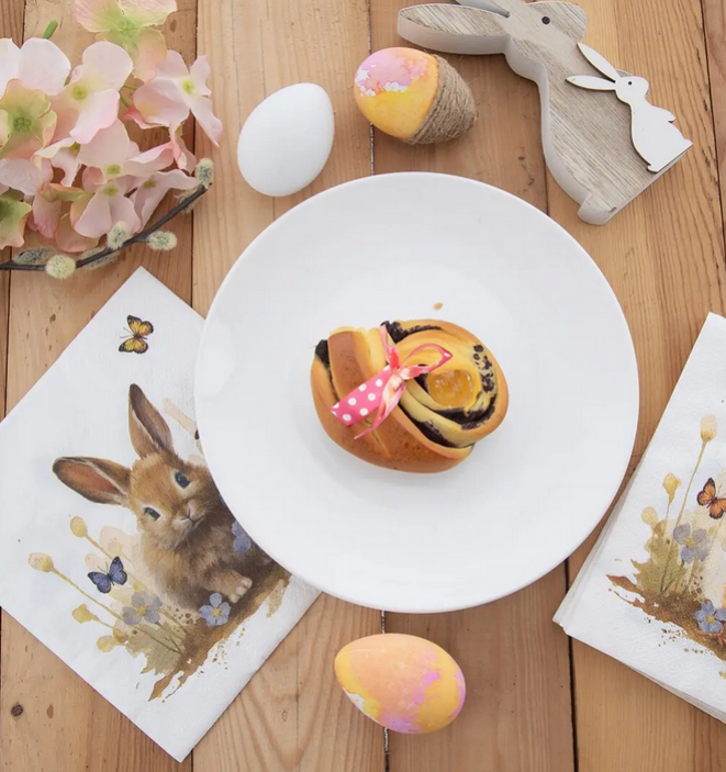 Roztomilé papierové obrúsky s veľkonočným motívom zajačika a kuriatka dodajú vášmu stolu tú pravú sviatočnú atmosféru. Sú ideálnym doplnkom na veľkonočné stolovanie, rodinné stretnutia aj jarné oslavy.