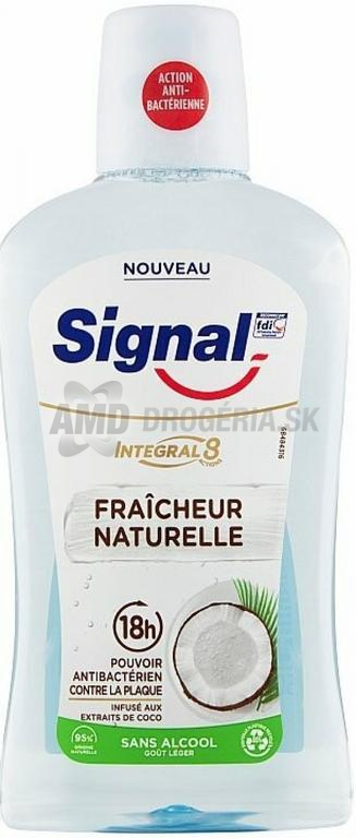 SIGNAL Nature Elements Cocos ústna voda 500ml Ústna voda Nature Elements Cocos je určená pre všetky typy zubov či ďasien. Vhodná aj pre deti od 6 rokov. Obsahuje zinok, vďaka ktorému posilňuje vaše zuby a chráni ich proti vzniku zubnému kazu. Obsahuje tiež vegánske zloženie, ktoré má až 95% prírodných zložiek, ktoré sú šetrné ku vašej pokožke. Obsahuje tiež výťažok z kokosu, ktorý dokonale vyživuje vaše zuby i ďasná. Účinne bojuje proti baktériám a zubnému povlaku po dobu až 18 hodín. Dokonale čistí vaše ústa i zuby v medzizubných priestoroch, kam sa zubná kefka nedostane. Ústna voda má antibakteriálny účinok a dokonale ničí baktérie vo vašich ústach. Poskytuje vašim zubom prirodzenú belosť. Neobsahuje žiadny alkohol. Zanecháva vaše ústa dokonale čisté s príjemnou sviežou príchuťou kokosu. Objem balenia: 500ml