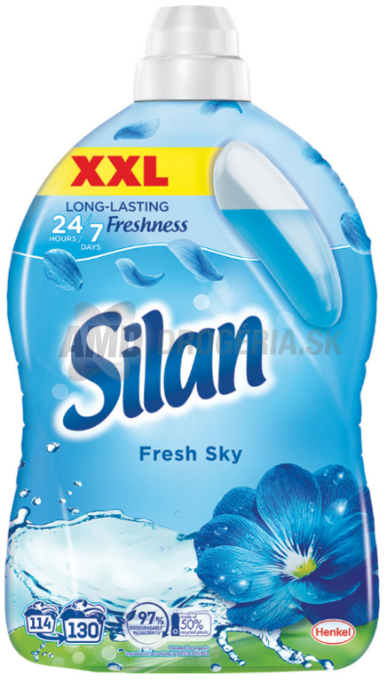 - Udržateľnosť: Aviváž Silan Fresh Sky obsahuje 97 % odbúrateľných zložiek a jej fľaša je 100 % recyklovateľná, čo je ohľaduplné voči životnému prostrediu.