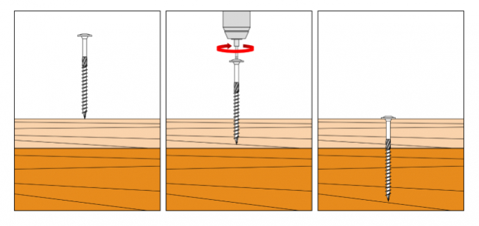 Skrutky zaskrutkujte priamo do dreveného podkladu bez predchádzajúceho vŕtania otvorov.