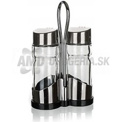 Sada solnička a korenička CULINARIA II 40 ml, 3 ks. Veko: nerez 18/8+ plast PP + silikónové tesnenie, sila nerezu 0,40 mm, dozy: sklo,stojan nerez 18/0, základňa: 0,40 mm, držadlo drôt 5,0 mm