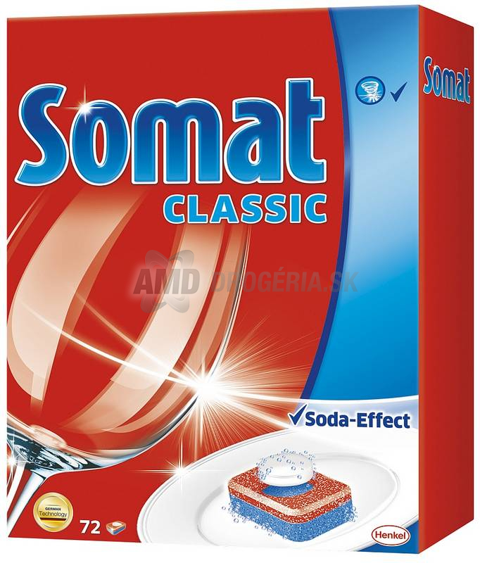 Tablety Somat Classic vo výhodnom balení s čistiace technológiu Soda-Effect pre odstránenie aj tých najodolnejších škvrny a pripálenín pre perfektné výsledky používajte vždy spoločne so Somat soľou a Somat oplachovačom.
