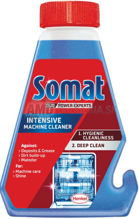 Somat čistič do umývačky riadu je špeciálne vyvinutý na zabezpečenie maximálnej čistoty a hygieny vašej umývačky riadu. Ako expert na automatické umývanie riadu, Somat ponúka inovatívne riešenie pre odstránenie mastnoty, vodného kameňa a nepríjemných pachov, ktoré sa môžu hromadiť v priebehu času.