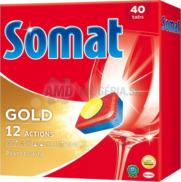Multifunkčné tablety Somat Gold ponúkajú ten najlepší umývací výkon. Kombinujú v sebe 12 funkcií vrátane leštidla, soli či odstraňovače zápachu. Odstráni aj ťažko odolné nečistoty vrátane pripečenín a pripálených zvyškov jedla. Výsledkom je vždy úplne čistý riad bez námahy a nutnosti předmáčení. Tablety sú bez fosfátov, šetrné k životnému prostrediu a sú obohatené o silu kyseliny citrónovej, vďaka ktorej odstránia aj úporné nečistoty bez námahy.