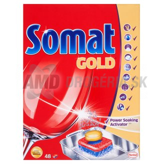 Nový Somat Gold obohatený o novú unikátnu receptúru s Aktivátorom odmáčania , ktorý sa aktivuje okamžite - naruší pripečený povrch krusty - a tak prenikne hlboko aj do veľmi odolných škvŕn od jedla a pripečenín .
