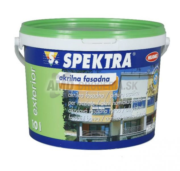 SPEKTRA akrylová fasádna farba - Vrchný náter pre staré a nové fasády a taktiež vnútorné murované povrchy. Vyrába sa na vodnej báze, vyznačuje sa dobrou krycou schopnosťou a odolnosťou proti agresívnym atmosférickým vplyvom.