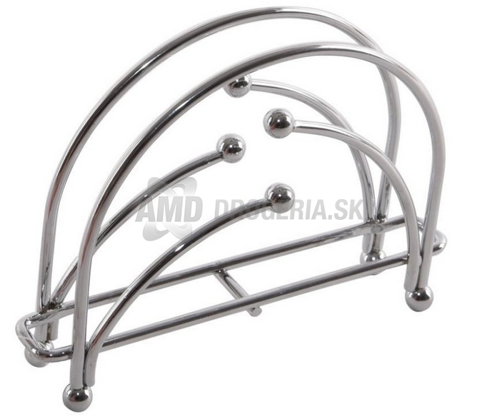 Stojan je vyrobený z kvalitného kovového drôtu s chrómovou povrchovou úpravou, ktorá zabezpečuje jeho odolnosť a dlhú životnosť. Vďaka stabilnej konštrukcii spoľahlivo drží obrúsky na mieste a zároveň pôsobí ako vkusný interiérový doplnok.