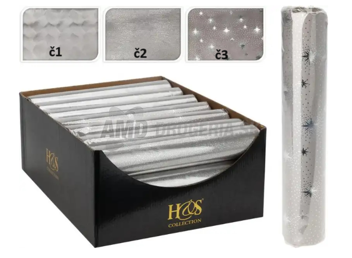 ŠTÓLA VIANOČNÁ ZAMAT SIVÁ/STRIEBORNÁ MIX 28X150CM