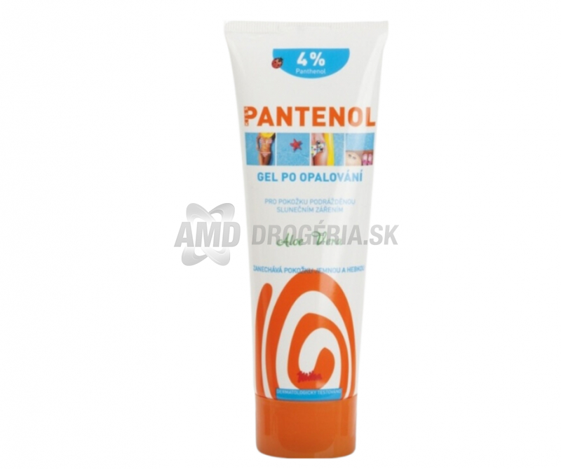 Pantenol Aloe Vera gél po opaľovaní. Tento je určený pre nadmernú spálenú kozmetiku a obsahuje účinné zložky ako Aloe Vera a Pantenol. Jeho cieľom je poskytnúť dokonalú úpravu a obnoviť povrchovú štruktúru pokožky po opaľovaní. Okrem toho účinne podporuje regeneráciu poškodenej pokožky.