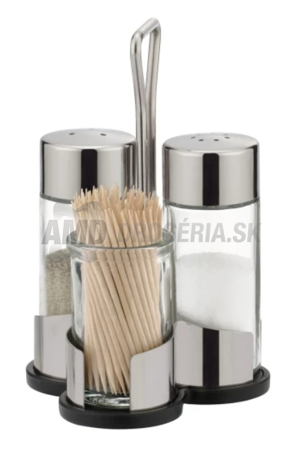 Táto stolová súprava na dochucovanie so soľou, korením a špáradlami CLUB je praktickým a elegantným doplnkom pre domácnosti i gastronomické zariadenia. Je to niekoľko dôležitých informácií o tejto súprave: