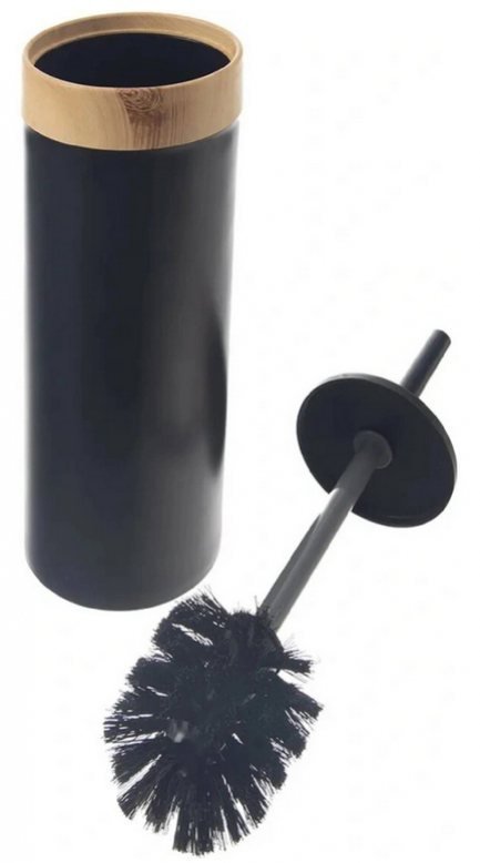 Moderná WC súprava v elegantnom prevedení spája praktickosť s dizajnom, ktorý zaujme na prvý pohľad. Kombinácia čierneho plastu a horného lemu v imitácii dreva vytvára štýlový doplnok vhodný do každej kúpeľne.