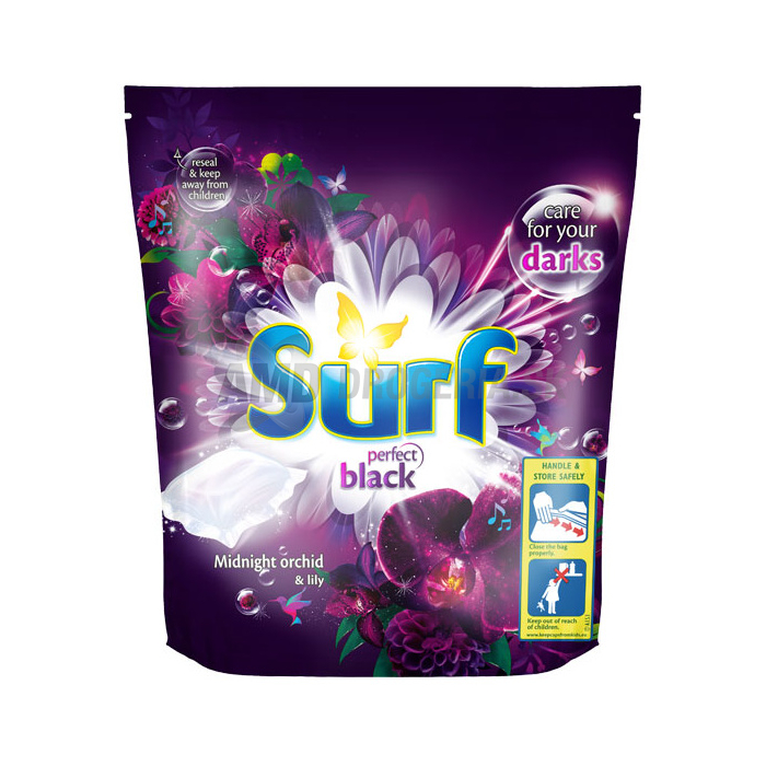 Surf Black bol vyvinutý na tmavé oblečenie so špeciálne navrhnutou receptúrou, ktorá pomôže zaistiť, aby tmavé oblečenie zostalo tmavé a dlhšie ako nové. Špeciálne zložky prenikajú hlboko do tkaniny a odstraňujú tak aj tie najodolnejšie škvrny.
