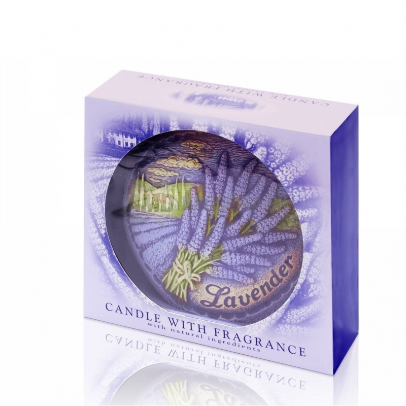 Aromatická Darčeková sviečka s motívom levandule 130 g, s priemerom 13 cm je vynesená váhe 490 g,