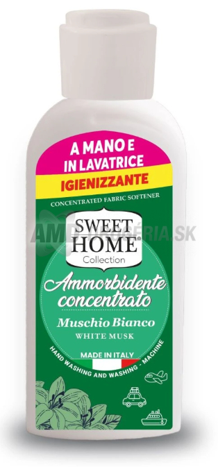 Vyskúšajte obľúbenú taliansku aviváž White Musk z kolekcie Sweet Home v praktickom cestovnom balení. S objemom 105 ml vystačí na 3 pracie cykly a je ideálna na všetky druhy bielizne – od jemnej po každodennú.
