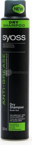 Popis produktu SYOSS Anti-Grease suchý šampón v spreji na mastné vlasySuchý šampón v spreji SYOSS AntiGrease je určený pre mastné vlasy. Vašim vlasom zabezpečí jeden deň sviežosti naviac a zbaví Vás pocitu mastných vlasov bez umývania.Použitie: Nastriekajte na vlasy zo vzdialenosti 20 cm a uterákom vmasírujte do vlasov, prečešte. Vlasy vyfénujte, aby ste odstránili prípadné zvyšky šampónu.