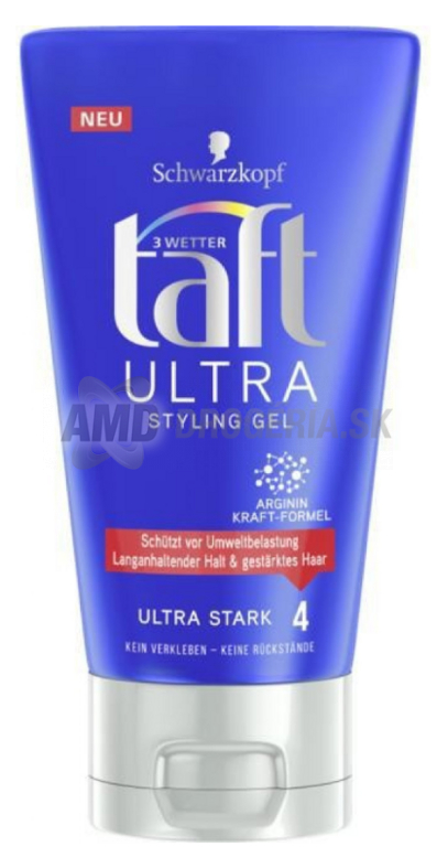 "Taft Ultra Styling Gel - Stylingový gél na 24-hodinovú ultrapevnú fixáciu, 150 ml. "Ultra silný a podmanivý: môj účes, ktorý priťahuje všetky oči." - Heidi Klum. Čisté kúzlo pre nezabudnuteľné chvíle, krásne upravené vlasy rovnaký efekt ako šperky a je dokonalou povrchovou úpravou vášho vzhľadu. Túžite po tom, aby boli vaše vlasy v perfektnom stave? Nikdy to nebolo jednoduchšie! S vylepšeným zložením Taft Ultra zažijete mimoriadne silnú 24-hodinovú fixáciu, ktorá vlasy zaťažíte. Preto je Taft Ultra najnovším stylingovým radom pre dlhotrvajúcu, ultra silnú fixáciu. Ľahko sa tiež rozčesáva. Vyskúšajte podmanivý účes, ktorý otáča hlavy celý deň aj noc. Stylingový gél. Perfektné držanie ktorá vydrží 24 hodín. Ultra silná fixácia po dobu 24 hodín. Nezlepuje vlasy. Nezanecháva žiadne zvyšky a ľahko sa vymýva. Nezaťažuje ani nevysušuje vlasy. Ultra silná fixácia.“