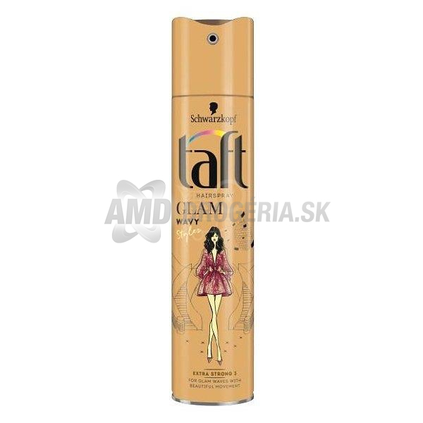 Lak na vlasy Taft Glam Wavy Styles je určený na špeciálne príležitosti. Pre dlhodobý styling, vyčesané a dlhodobo fixované vlasy. Špeciálna receptúra vlasy fixuje deň i noc, bez toho, aby ich vysúšala či zlepila. Vytvorte si úchvatné a podmanivé vlny, ktoré okúzlia, použite taft Glam a môže sa ísť na párty či slávnostný večierok.