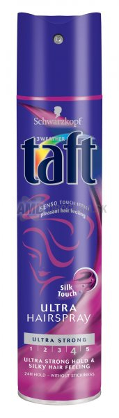Taft Ultra Silk Touch lak na vlasy 250mlDlhodobo NÁDHERNÝ účes! Dokonalá fixácia po 24 hodínUltra silná fixácia, nezlepuje vlasyNezanecháva zvyšky, ľahko sa vyčesávaNezaťažuje vlasy a zabraňuje ich vysúšaniu