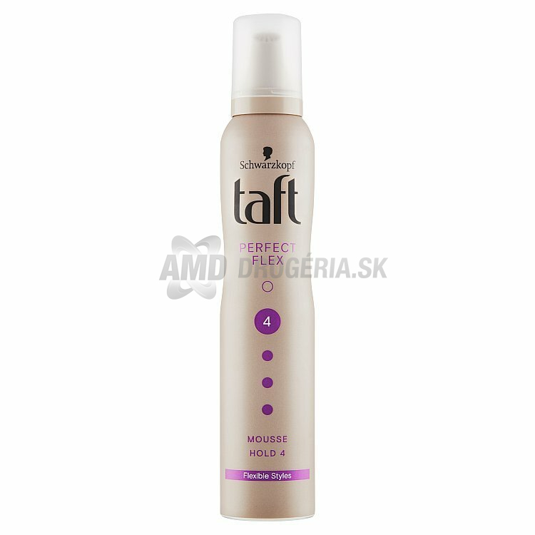 Taft Perfect Flex pena pre poddajné a flexibilné účesy. Stupeň fixácie 4. Dlhotrvajúca fixácia bez lepenia. Poskytuje objem a kontrolu. Pomáha chrániť proti poškodeniu z vysušovania. Bez zvyškov a zaťažovania.