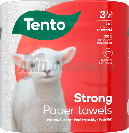 Univerzálne papierové utierky najpevnejší TENTO 3 vrstvové. Nové utierky TENTO Extra Strong SÚ Pevné MAJÚ Super výdrž. Rýchlo jednoducho odstráni dokonca aj tie najväčšie škvrny ČI Mokré Fľaky. Vďaka novej kvalite papierov 3vrstvému, extra veľkému útržku utierky výborne sajú nerozpadávajú sa, KEĎ SÚ Ani mokré. Extra Pevné utierky TENTO - nevyhnutná Pomoc pri domácom upratovaní.