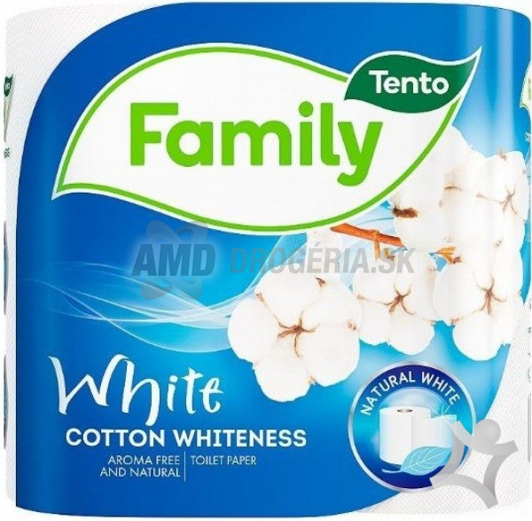 Tento Family Cotton Whiteness je prirodzene biely toaletný papier bez parfumácie. Skladá sa z dvoch pevných vrstiev a predstavuje ekonomicky výhodnú voľbu. Toaletný papier, výrobok osobnej hygieny. Toaletný papier TENTO vám vďaka svojmu materiálu poskytne pohodlie a potrebnú hygienu. Dobrou voľbou pre vás bude, ak chcete neparfumovaný toaletný papier.Jeho pevnosť a jemnosť zaručí maximálne pohodlie Toaletný papier TENTO Family White (4 ks) je zhotovený bez parfumácie.